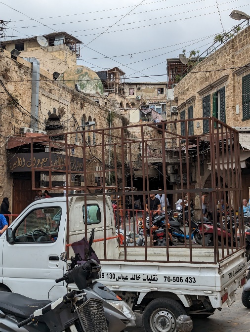 Après la visite du château, nous avons pris un tuk-tuk (véhicule de transport léger) en direction d'El Mina, le port de Tripoli. Le trajet, au prix de 50 000 livres libanaises (moins de 50 centimes) par personne était génial ; nous arpentions les rues de la vieille ville et des quartiers plus moderne à bonne vitesse tandis le chauffeur nous parlait de la situation des locaux.