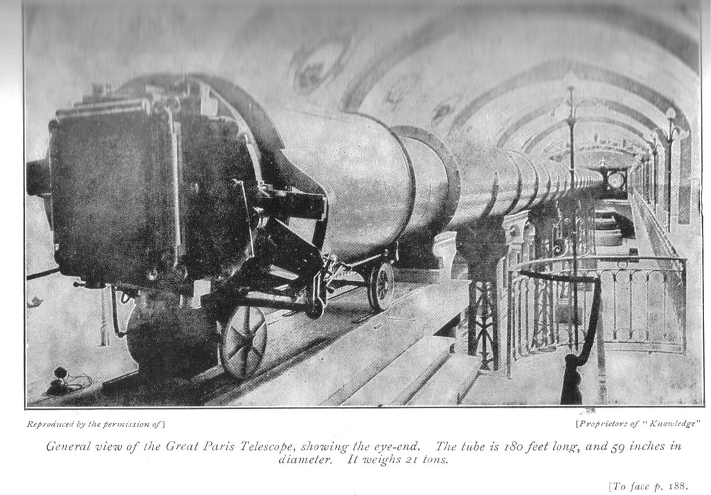 La Grande Lunette de l'Exposition Universelle de Paris de 1900 était l'une des attractions phares de cet événement international. Fabriquée par la société française Gautier, cette lunette astronomique massive avait des caractéristiques impressionnantes, notamment un tube télescopique de 60 mètres de longueur et un objectif de 1,25 mètre de diamètre, ce qui en faisait l'une des plus grandes lunettes de l'époque. Elle était exposée au Grand Palais, spécialement construit pour l'occasion, et ouverte au public, offrant ainsi une rare opportunité d'explorer le ciel nocturne de manière immersive. Équipée des technologies optiques de pointe de l'époque, la Grande Lunette a contribué à l'avancement de la science astronomique en permettant aux astronomes de réaliser des observations importantes. Cette exposition universelle a mis en lumière les réalisations et les progrès technologiques de l'époque, avec la Grande Lunette symbolisant l'ingéniosité technique de cette période et suscitant l'émerveillement du public face aux mystères de l'univers.