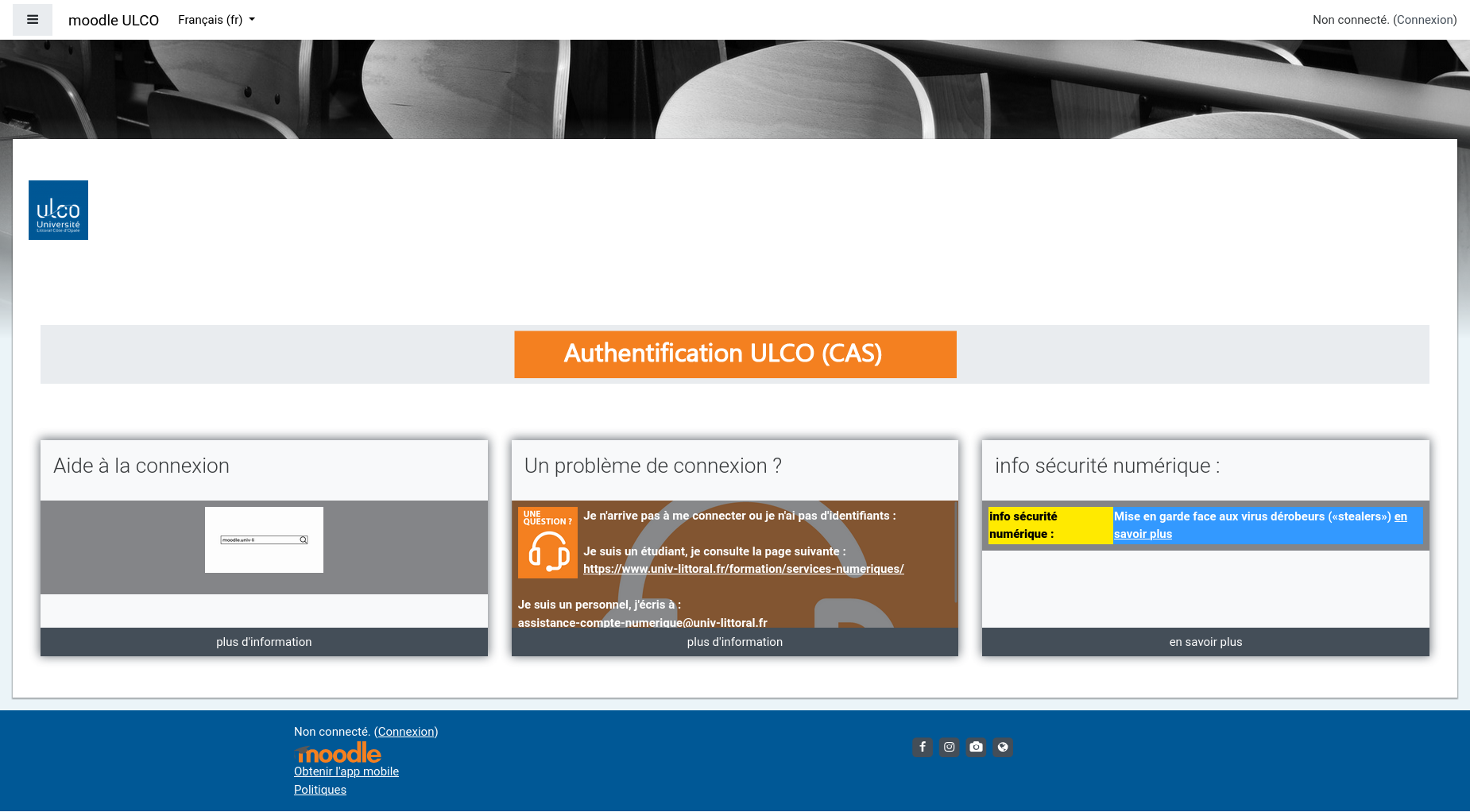 - Rendez-vous sur la page d'accueil : https://moodle.univ-littoral.fr