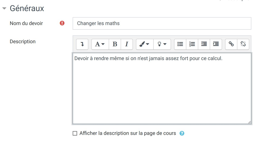 - Créez un "Devoir" de façon classique.