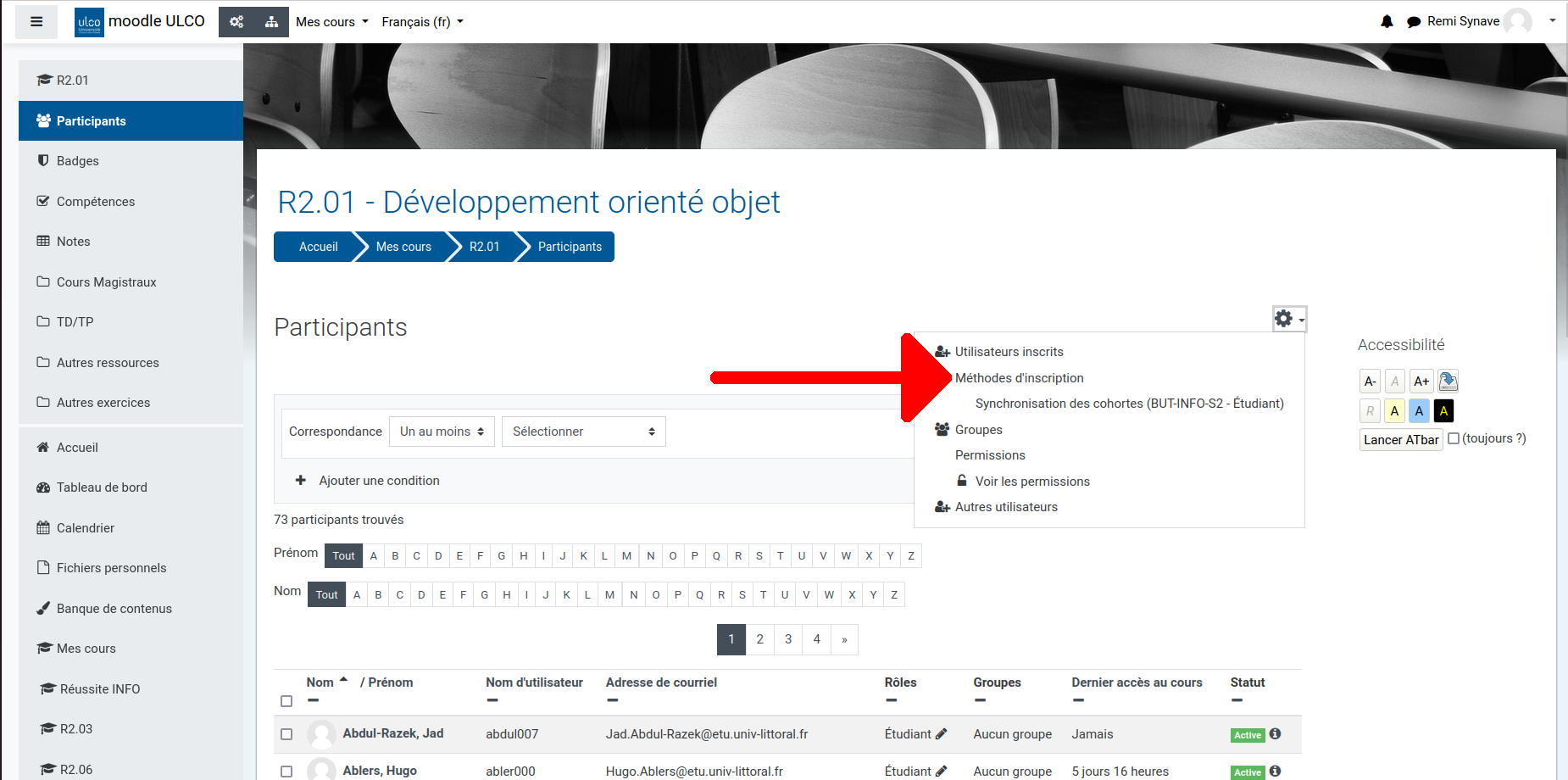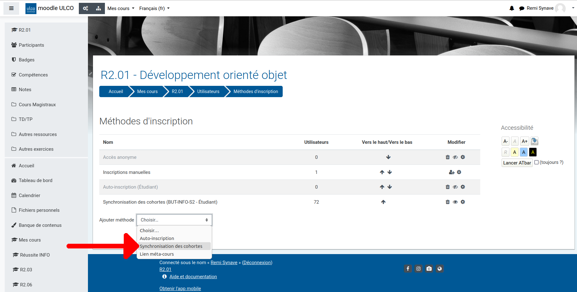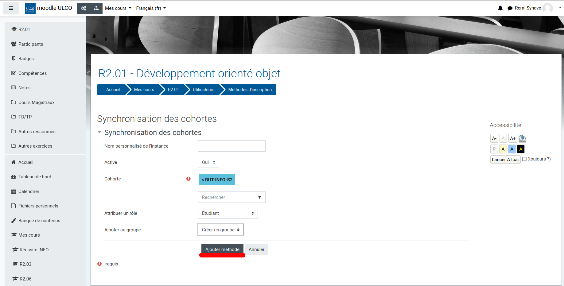 - Sur la page qui vient de s'ouvrir, sélectionnez "Ajouter méthode", "Synchornisation des cohortes".