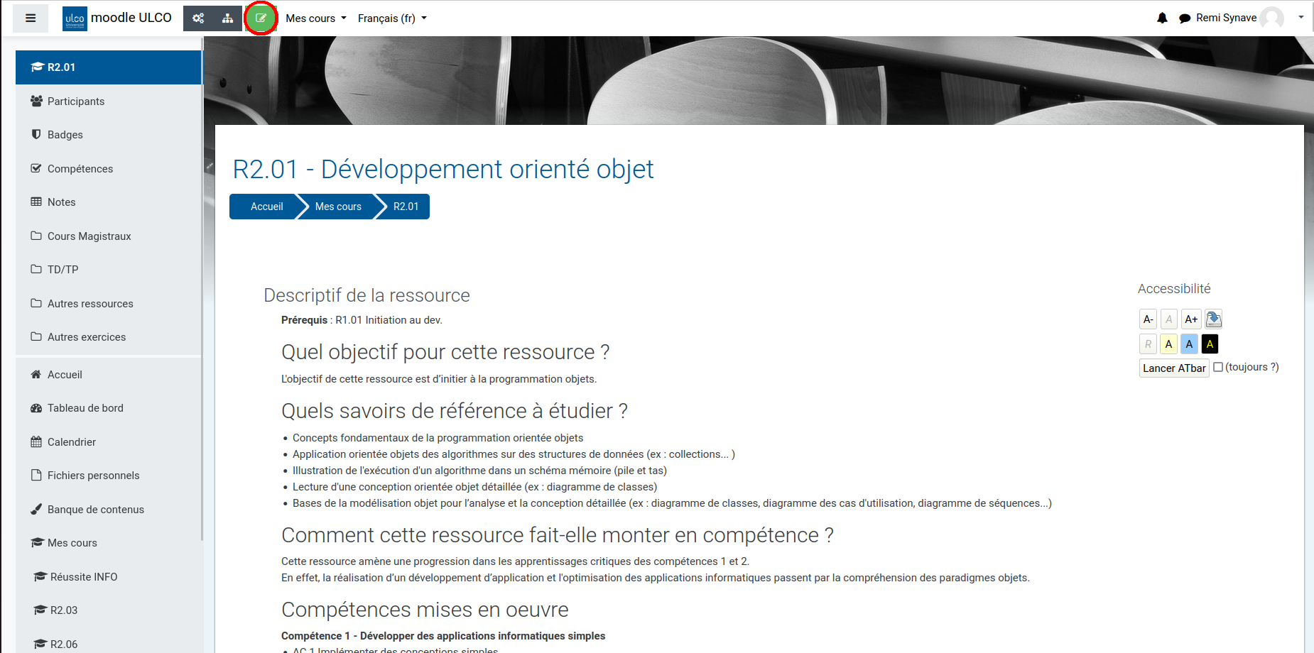 - Vous voici dans le mode édition où vous retrouverez les boutons classiques à côté de chaque élément.